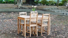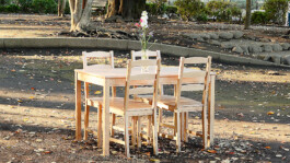 The artist placed an IKEA dining table in a Tokyo suburb park and changed the flowers on it daily. This piece transforms an ordinary household activity into a public display celebrating the small joys of daily life.