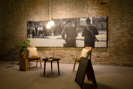 Flanking the central space are two side rooms, the “East Hipster Café” and the “West Hipster Café.” These spaces offer a humorous take on Berlin’s hipster culture and present fragments of interviews with former East and West Berliners who share their experiences of life during the era of the Berlin Wall.